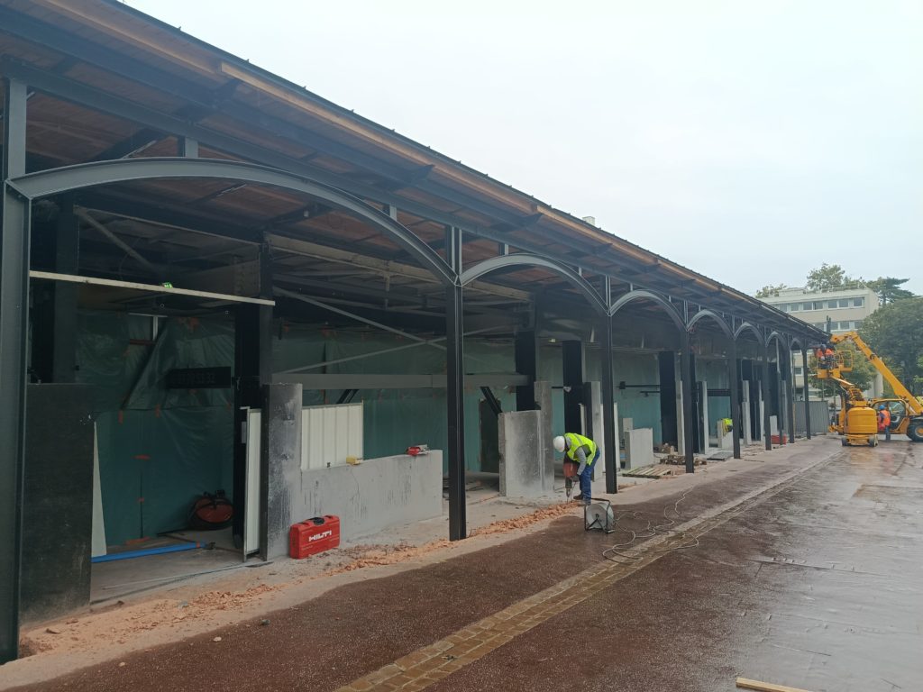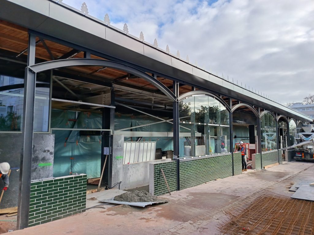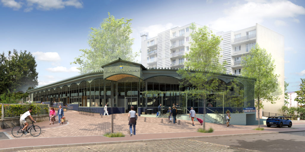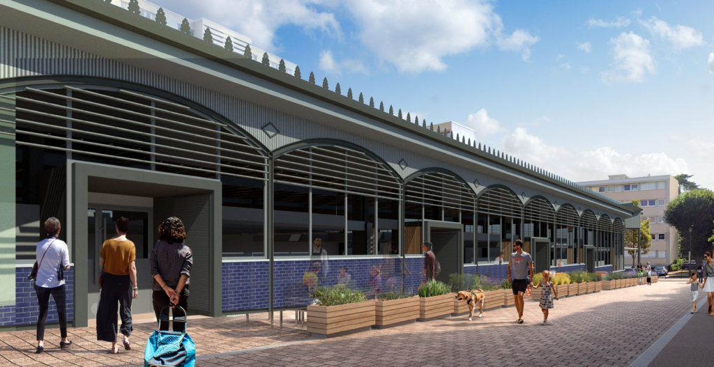 Rénovation et extension du Marché couvert Million-Rousseau. Création de nouvelles façades qui s’inspirent des principes des halles de marché traditionnelles, tout en les revisitant de manière contemporaine. L’objectif est de redonner de l’attractivité à la Halle, dans le cadre de la transformation progressive du centre-ville. Le projet prévoit également l’intégration d’un nouveau restaurant avec terrasse, ainsi que l’ouverture de quatre nouvelles boutiques, établissant ainsi une connexion renforcée entre le Marché et son environnement urbain immédiat.