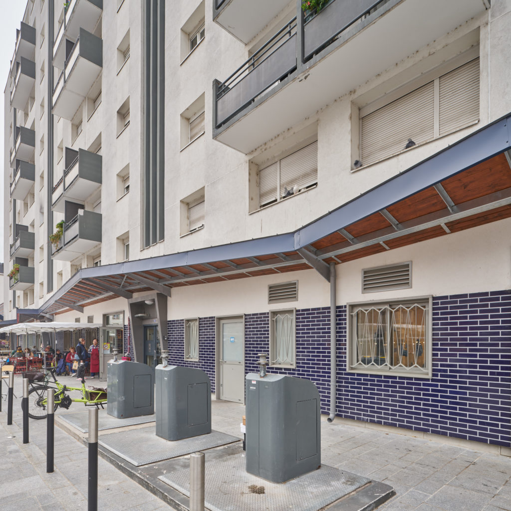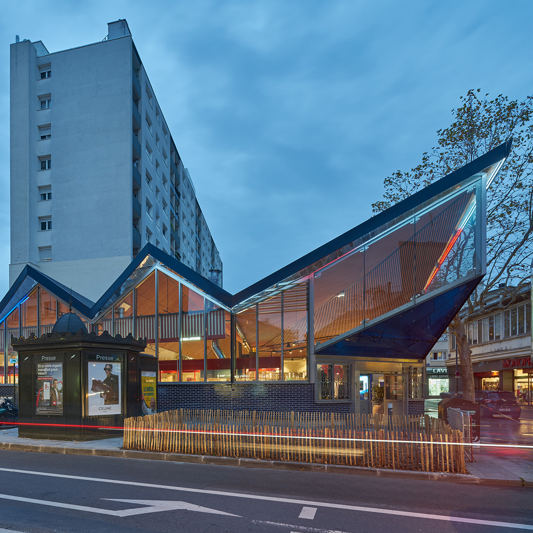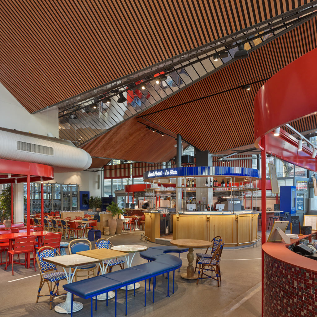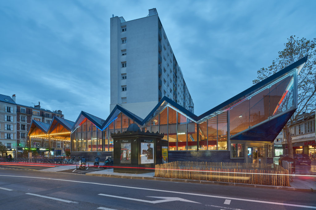 L’extension de la Halle du Marché des Victoires permet la création d’une Halle Gourmande de 671m², dédiée aux commerces de bouche. Ce nouvel espace comprend quatre stands de cuisine du marché, quatre stands de traiteur, ainsi qu’une terrasse couverte de 100m² destinée à la restauration sur place. L’aménagement du sous-sol existant sert de locaux de support. Le chantier s’est déroulé en maintenant l’activité commerciale de la Halle, assurant ainsi la continuité des services.